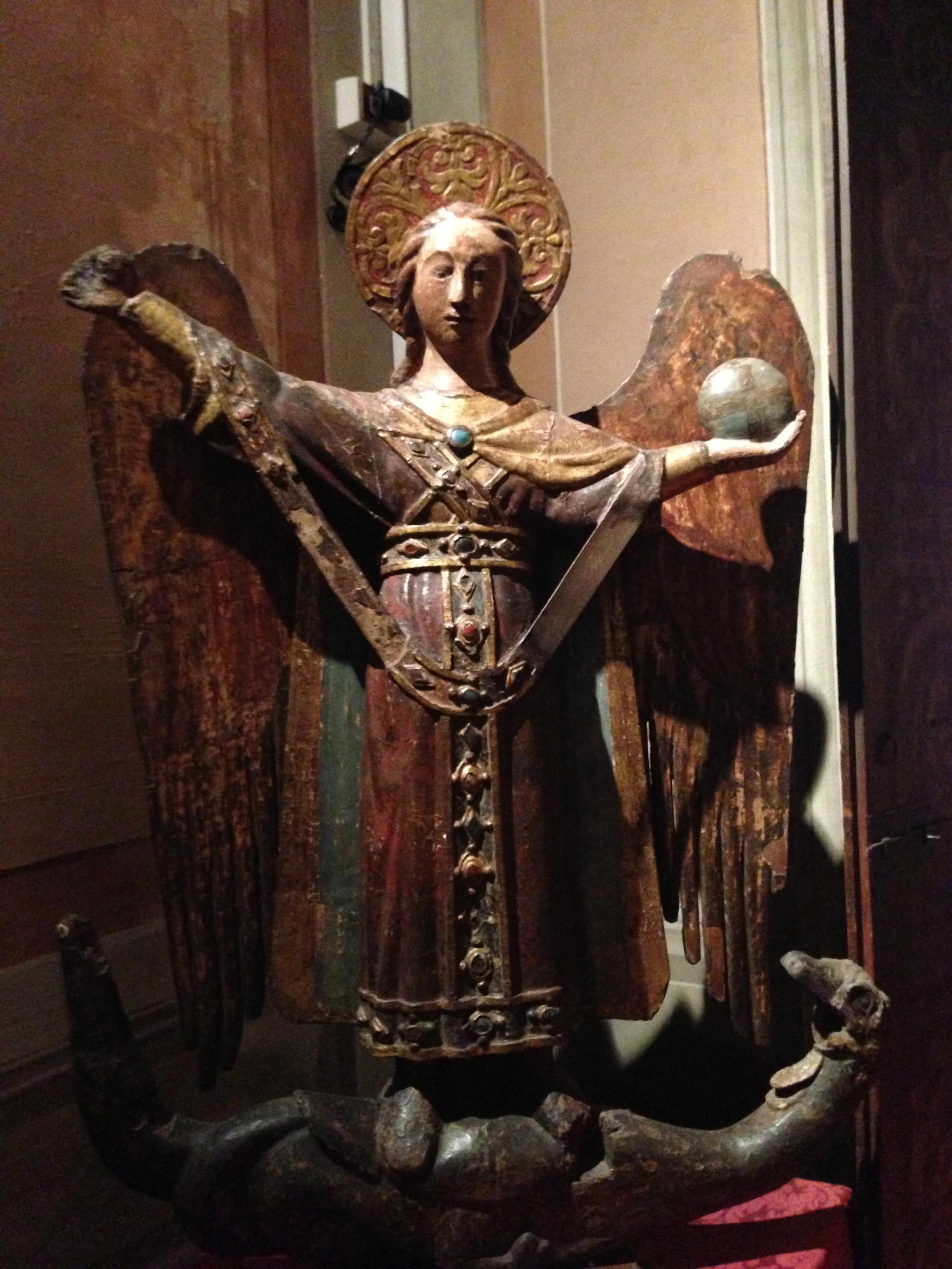 To my readers; I have been quiet on my blog for a few weeks while I visit my son who is studying in Italy. Tonight in some quiet time, I sat to receive this message from Archangel Michael. As I walk around the ancient city of Rome, I can feel the vibrations of all of the era’s and the beauty and the dogma of religion. This message was a wonderful reminder of how to simply Be. This picture was taken in Lucca, Italy in a small palace and is Archangel Michael defeating evil. It was created between the 8th & 9th centuries.